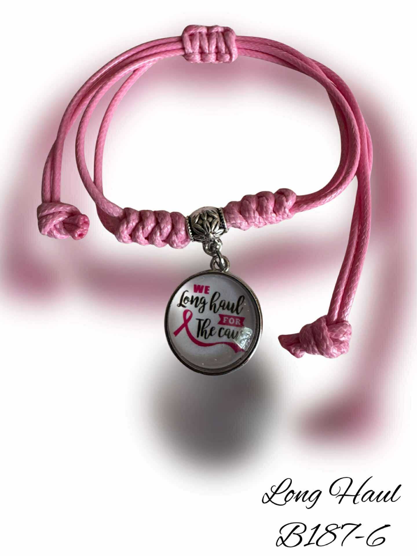 This pink paracord bracelet, featuring a smooth cabochon centerpiece, symbolizes strength and support for the Long Haul journey toward a cure. Durable and comfortable, it serves both as a meaningful accessory and a conversation starter, helping raise awareness while complementing your everyday look with purpose.
