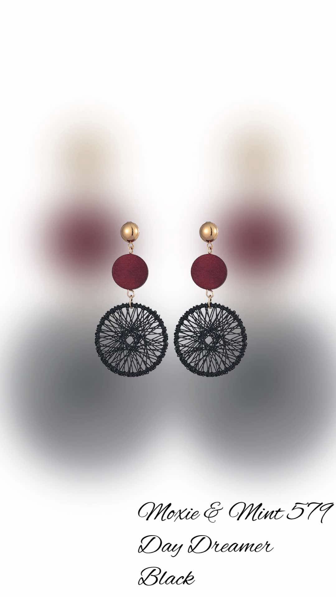 Introducing the E667-6 Day Dreamer Black earrings. Handcrafted with a gold post back and a wooden hollow out drop; its unique design and delicate black string circle make it an elegant and eye-catching addition to any outfit. Elevate your style with this one-of-a-kind piece.