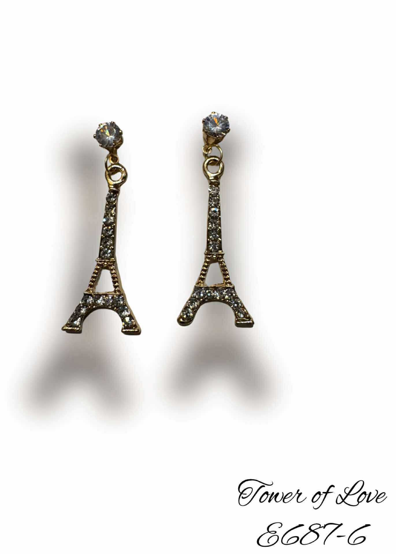 Elevate your style with the E687-6 Tower of Love earrings, featuring a sophisticated post design adorned with sparkling rhinestones. These gemstone-detailed dangling earrings combine elegance and modern flair, making them perfect for both formal occasions and everyday wear. Crafted to catch the light beautifully, they add a refined touch to any outfit.