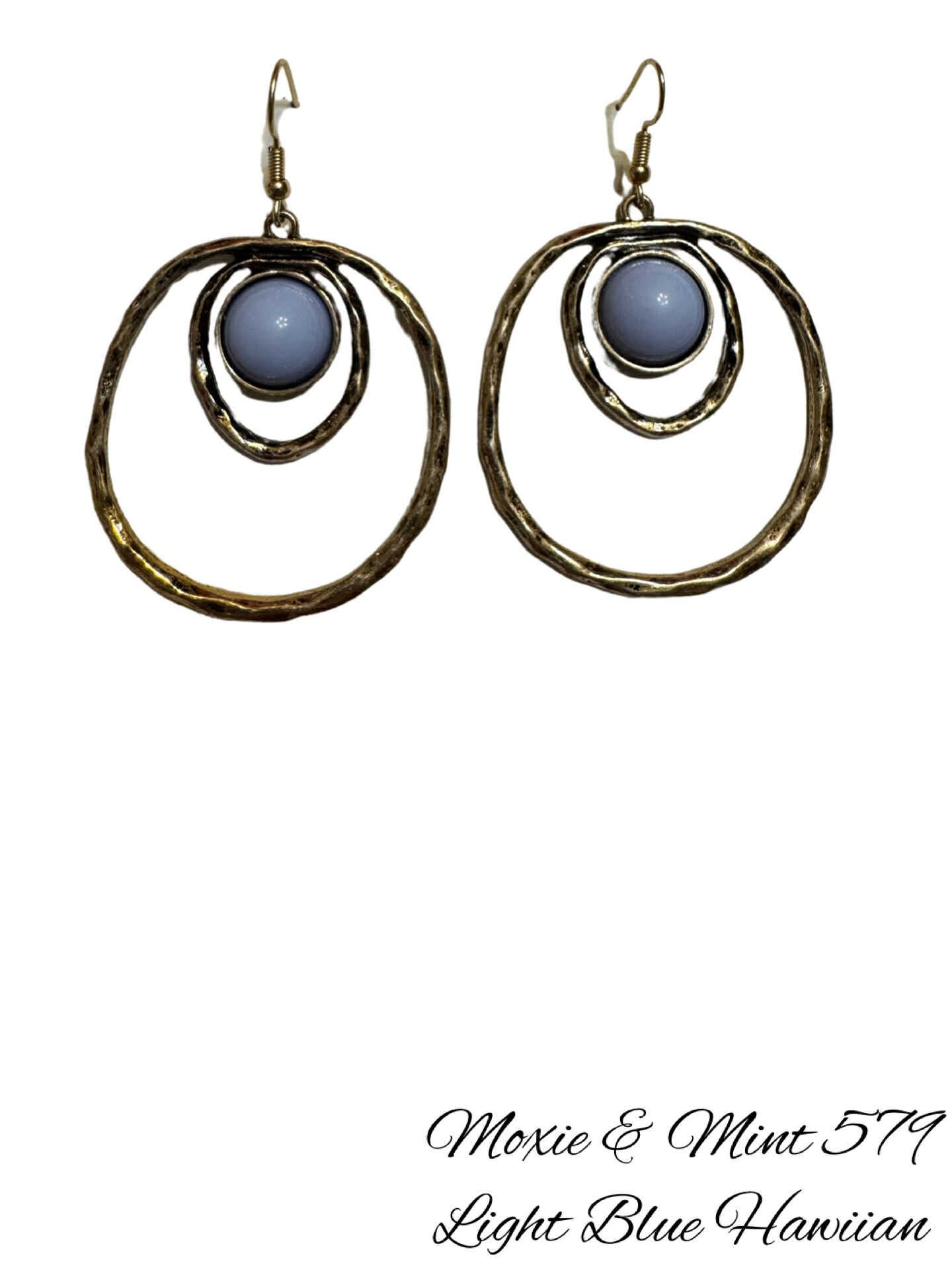 Experience the beauty and elegance of the E688-6 Lite Blue Hawiian earrings. These vintage-style earrings feature stunning Lite Blue stones set in gold fishhook designs. Enhance your outfit and make a statement with these timeless pieces.