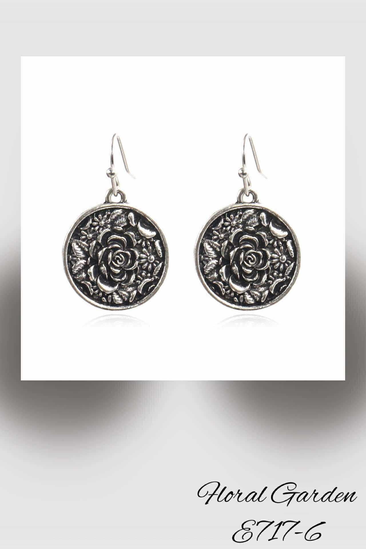 This exquisite silver fishhook earring features a round medallion adorned with a delicate rose and other floral motifs. Crafted with precision, it offers a refined touch of nature-inspired elegance, perfect for those seeking a sophisticated accessory that complements both casual and formal attire. The lightweight design ensures comfortable wear throughout the day.