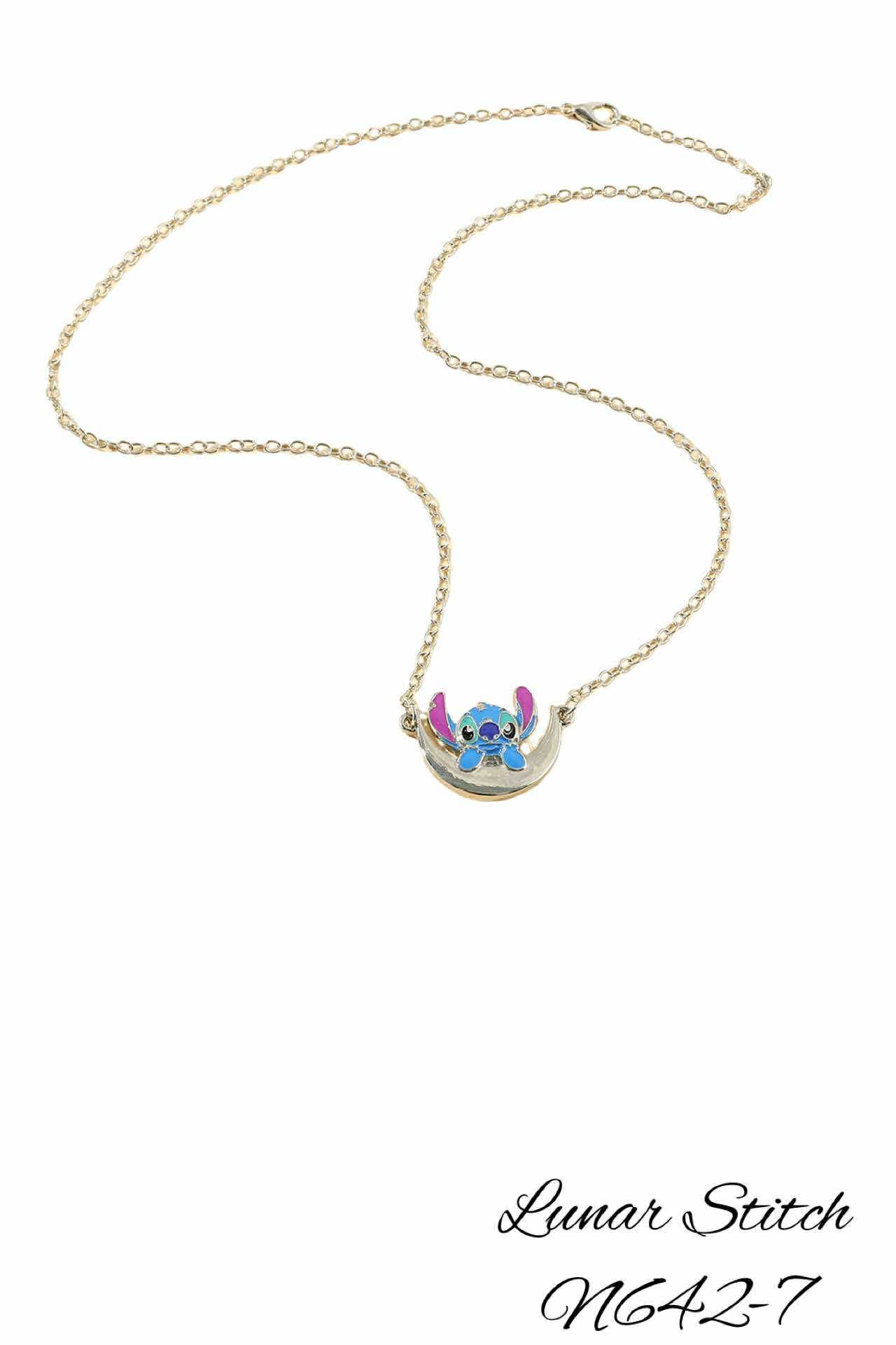 The N642-7 Lunar Stitch features a delicate 22-inch silver chain paired with a detailed stitch charm suspended on a crescent moon. Crafted for subtle elegance, this piece offers a refined balance of celestial inspiration and minimalist design, making it an excellent choice for those seeking a unique accessory with understated sophistication.