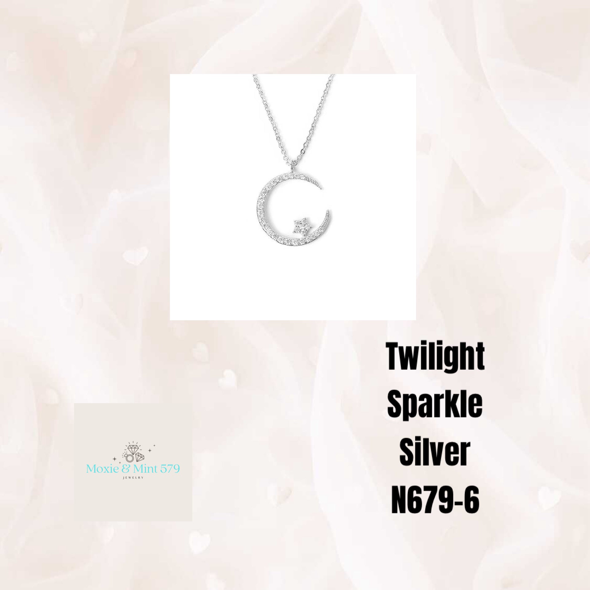 Expertly crafted and designed, the N679-6 Twilight Sparkle Silver necklace features a stunning moon pendant adorned with gemstones and a star within. The 18-inch silver chain includes a 2-inch extender for adjustable wear. Elevate your style with this celestial piece.