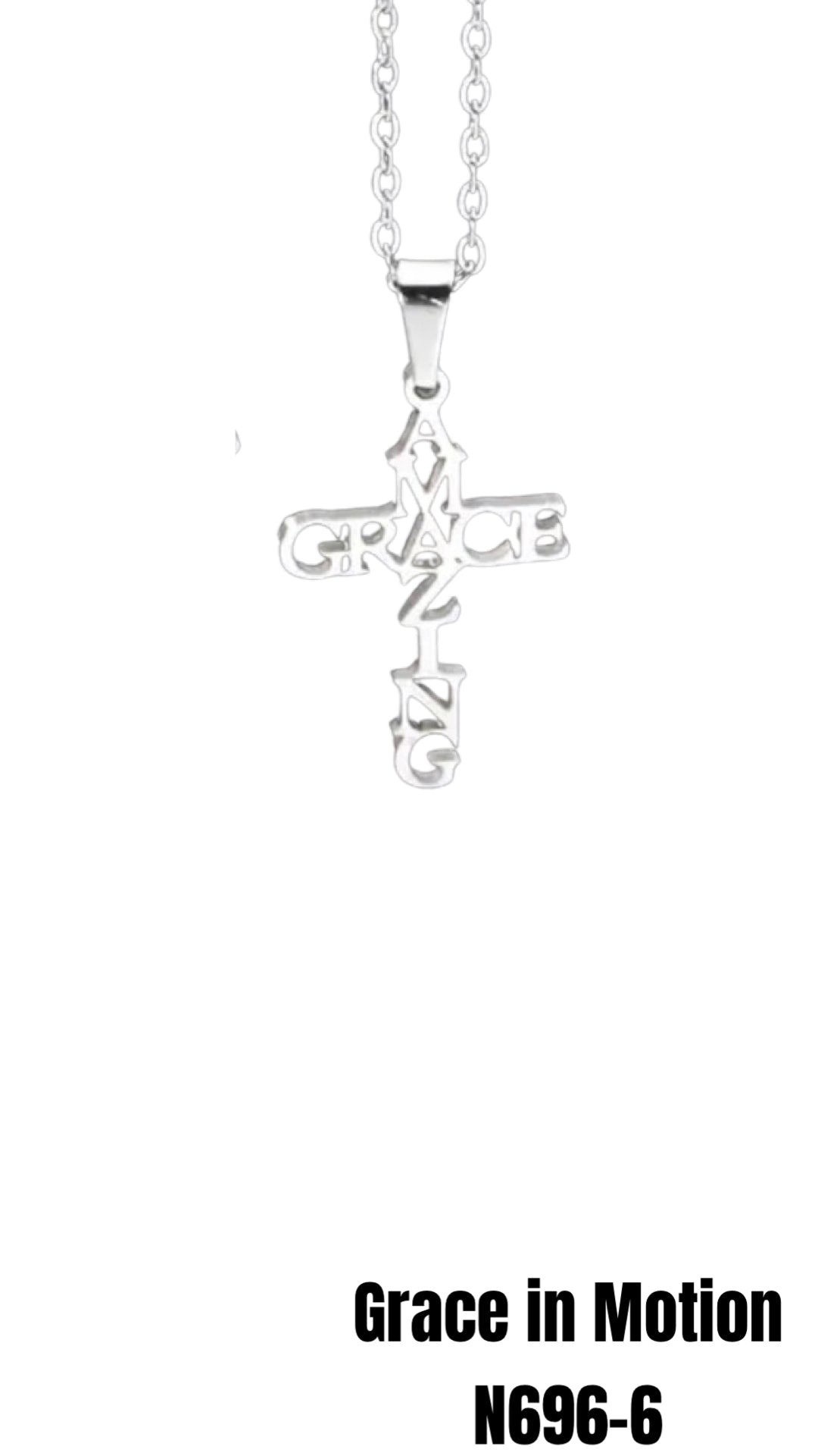 "The N696-6 Grace in Motion necklace features a 17 1/2-inch silver chain with a 2-inch extender and a cross pendant inscribed with the powerful phrase, 'amazing grace.' This elegant piece serves as a constant reminder of the strength and beauty found in grace. Perfect for any occasion."